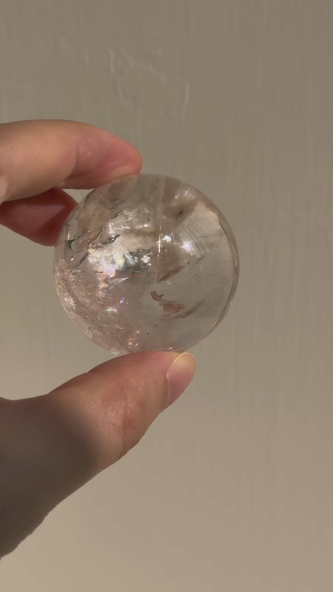 精品粉紅膠花白雲母共生水晶球 Premium Pink Hematoid with White Mica Sphere