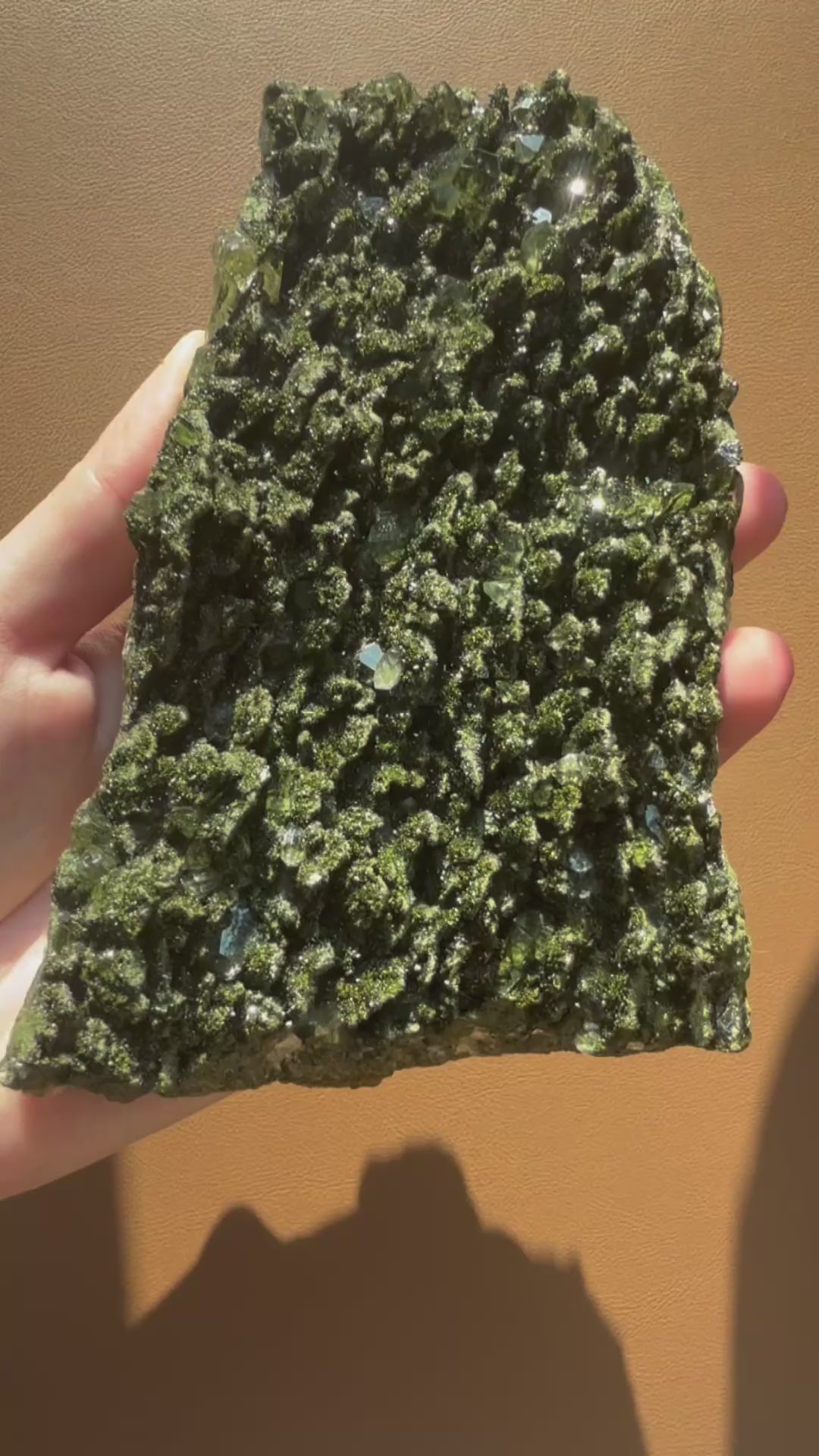 Epidote is a great stone to be used on crystal grids and meditation. It can be paired with Amethyst to enhance calmness and protection.