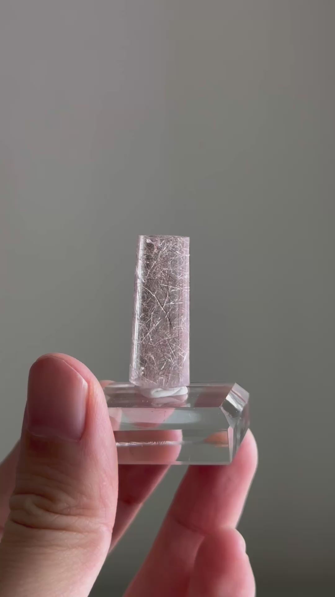 Rutilated Quartz is a stone with needles of rutile surrounded by clear quartz. This quartz is filled with pink rutile needles and contains thick and flat bundles of rutile.