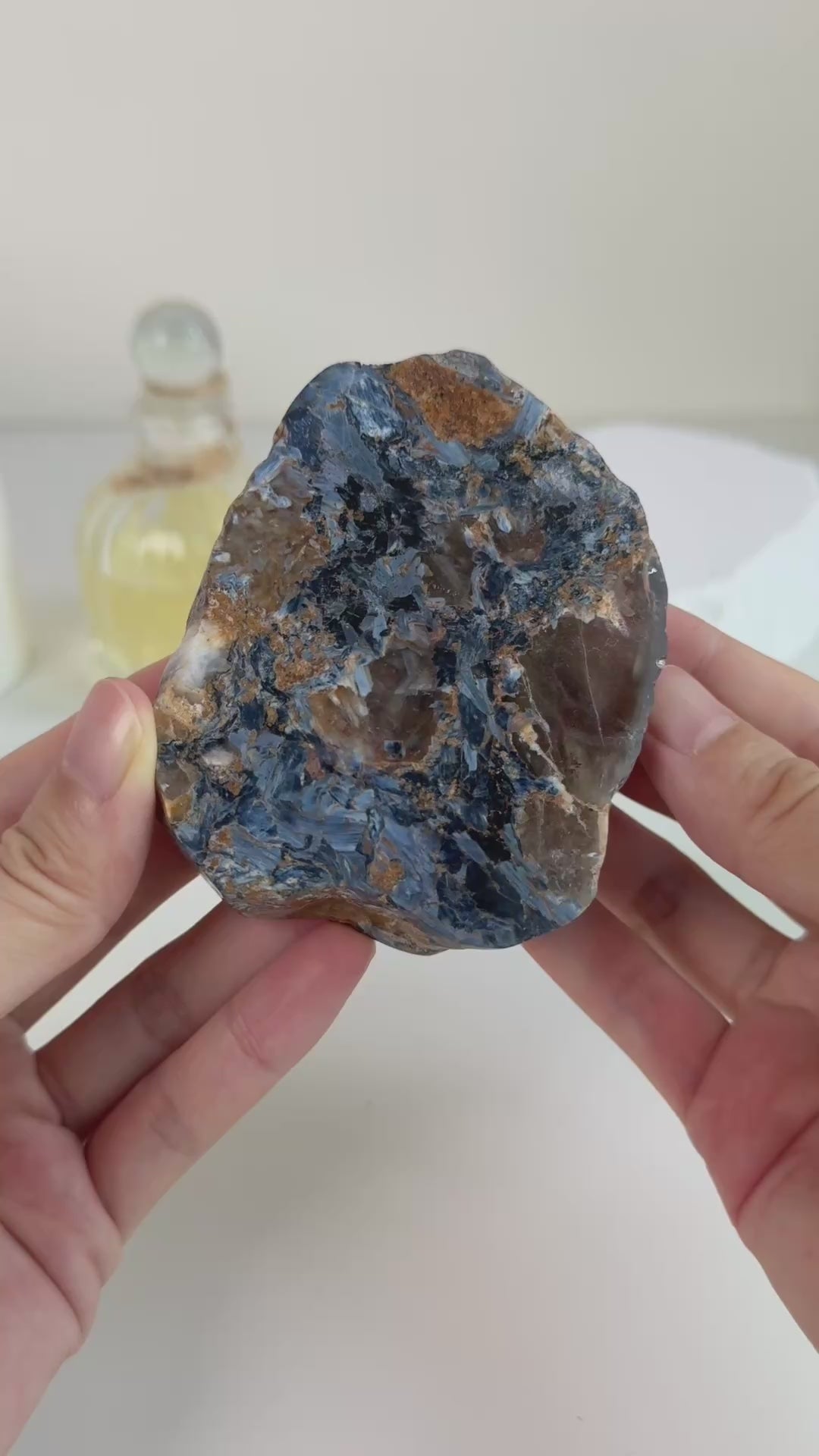 彼得石茶晶共生原石 Pietersite with Smoky Quartz Cluster