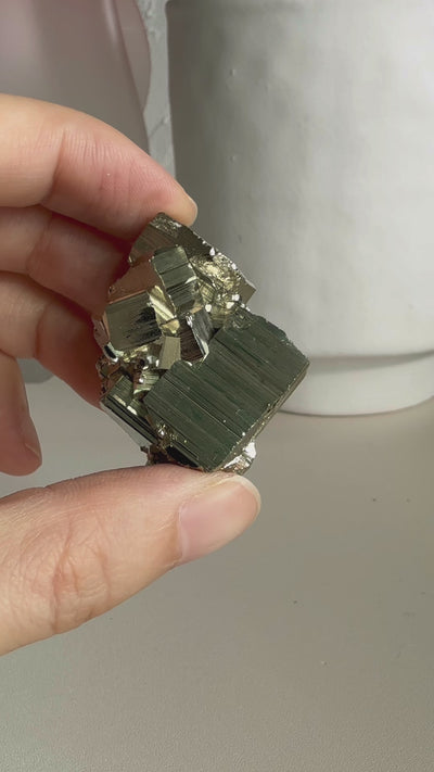 The origins of pyrite trace back as far as 3 billion years ago and formed from rocks that were rich in organic material such as sulphur and carbon dioxide. Ancient Romans would name stones that created sparks when struck against steel ‘Pyrite’. The name is derived from the Greek word ‘pyrites lithos’. It has an appearance similar to that of gold and is often known as "fool’s gold". It is considered a powerful stone for wealth and attracting good fortune and luck.