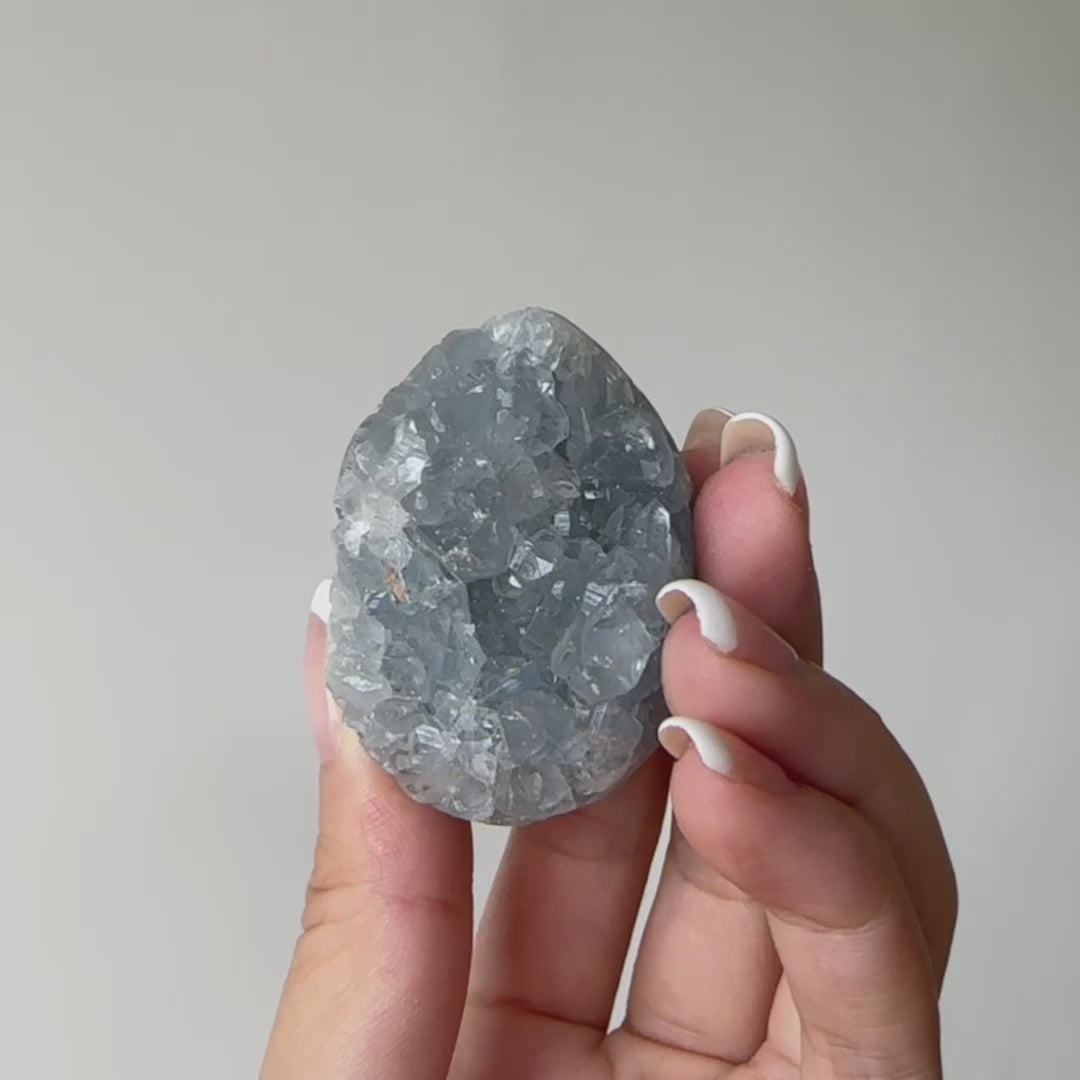 Blue colored Celestite is most popular with collectors due to its genuine color and appearance which is often noted as a stone made by angels. It is often used for mediation and helps strengthen the third eye chakra. By strengthening the third eye chakra it can help elevate wisdom and understanding. During meditation celestite can help provide high vibrational energy making you feel more focused, energized and optimistic. It is also often used for spiritual and angelic realm communication and provides a gentle powerful energy. Some people also like to put this crystal in the bedroom to use it for aiding with deep sleep and remembering your dreams. These beautiful Celestites look great in the home and would blend in with most aspects of the household.©HSP