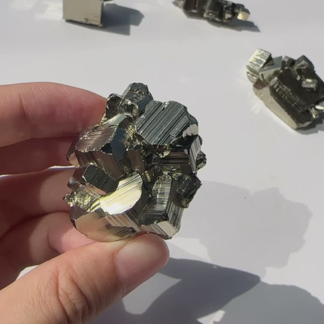 The origins of pyrite trace back as far as 3 billion years ago and formed from rocks that were rich in organic material such as sulphur and carbon dioxide. Ancient Romans would name stones that created sparks when struck against steel ‘Pyrite’. The name is derived from the Greek word ‘pyrites lithos’. It has an appearance similar to that of gold and is often known as "fool’s gold". It is considered a powerful stone for wealth and attracting good fortune and luck.