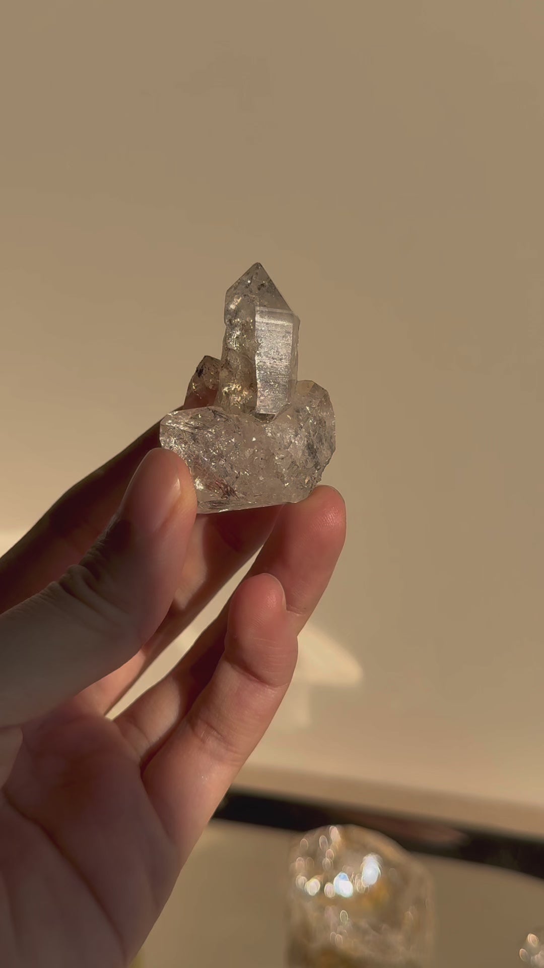 美國紐約出產的赫基蒙鑽石,因為天生擁有鑽石般透亮奪目的晶體和天然雙尖形態,被稱為赫基蒙鑽石,常見會帶有黑色的碳氫化合物的天然包裹體。赫基蒙鑽石在地底中經歷了四至五億年的壓力和溫度影響下形成,屬於極高頻石英,靈性強大,不但可以開啟和疏通阻塞人體所有脈輪,清除身體累積的有害能量。赫基蒙鑽石亦著名於能夠大大地加強其他心愛的水晶的能量。